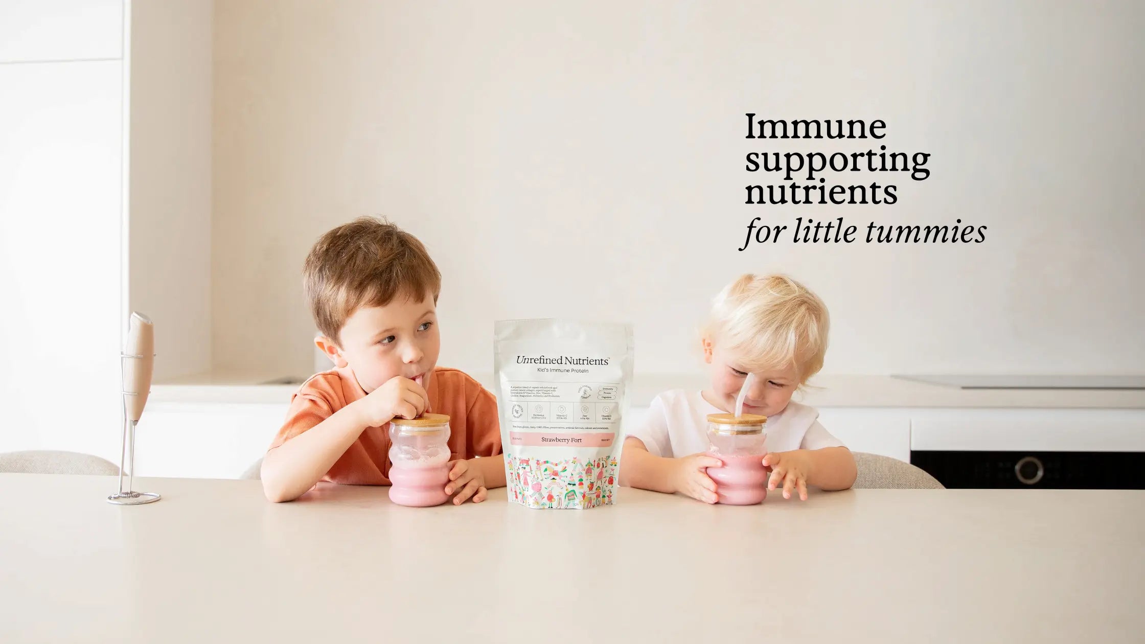 When her own toddler faced repeated daycare bugs, food aversions, and weight loss, Nicola began creating “immunity milkshakes” — wholefood blends packed with immune-supportive ingredients he’d actually drink. These shakes became the inspiration for our Kid’s Immune Protein.